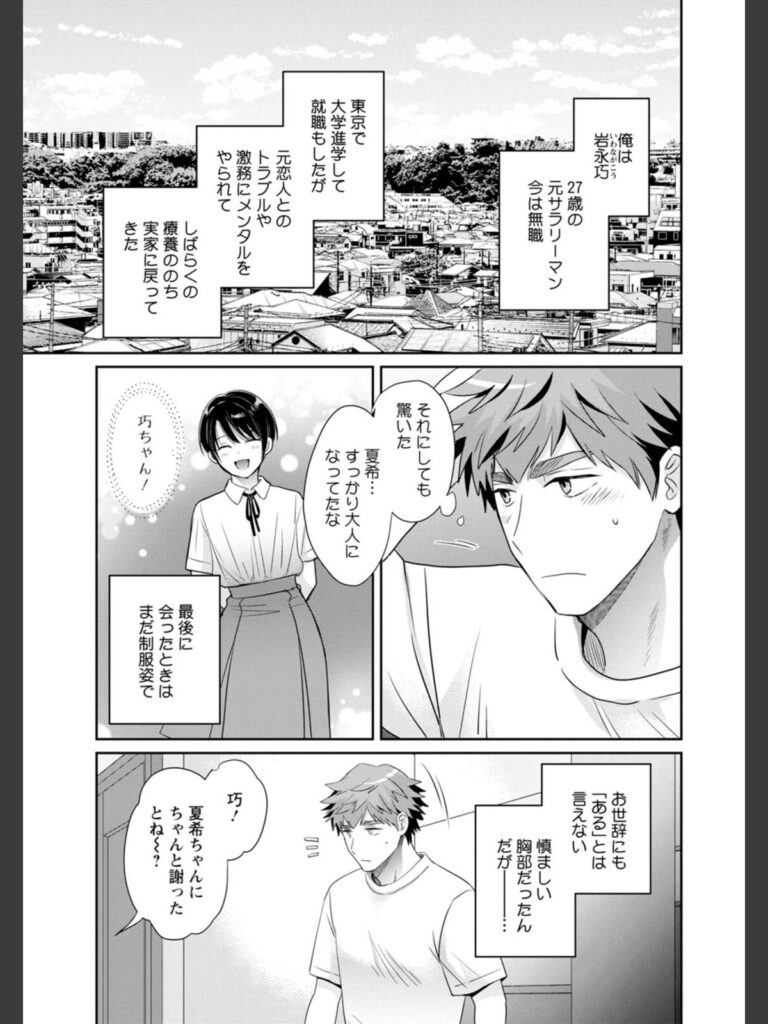 お前のことは弟以上には見れない…だって、つるんぺたんだったんだもの! 虫取りやかくれんぼ、およそ兄弟みたいに一緒に育ってきた「花邑夏希」と頑張ってきた育乳の成果がとんでもなかった! Aカップ未満だったおっぱいが、7年見ないうちにぼいんぼいんになってしまったんだ! …空白期間…