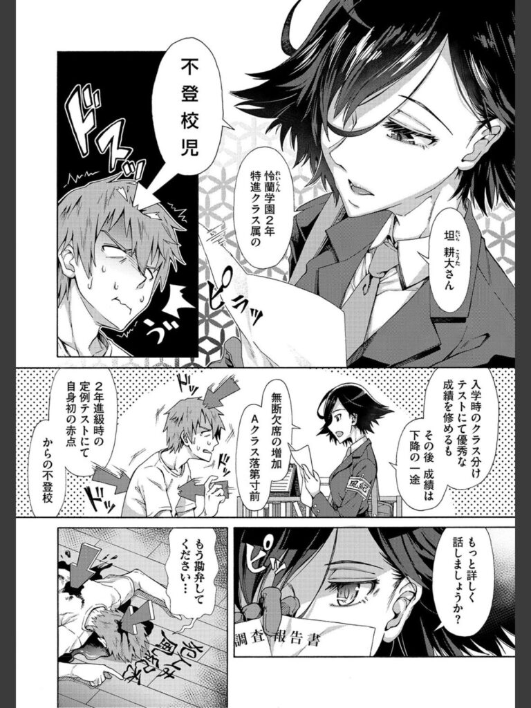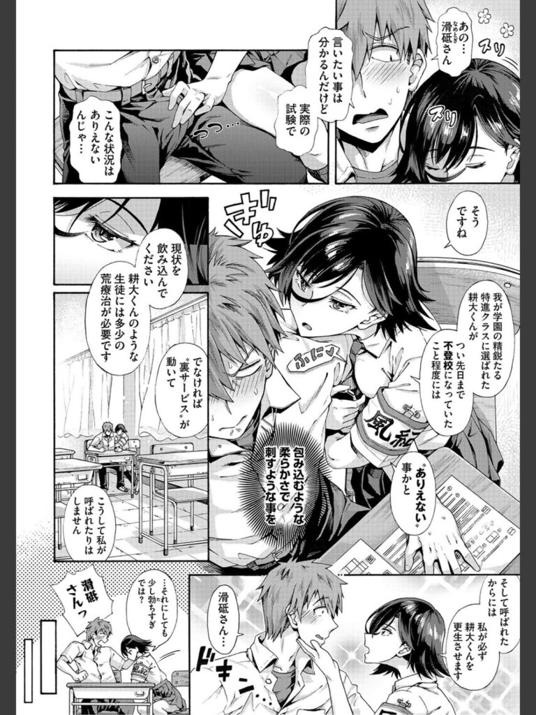 『私の仕事はアナタを更生させる事です』ある日、不登校の男子学生・坦 耕大(たいら こうた)の家に滑砥 矢庫(なめとぎ やこ)と名乗る風紀委員の女の子がやって来た。さっそく指導を始めると言い、なんといきなり耕大のズボンを脱がせてきたのだ。彼が抵抗しても「不健全な生活は不健全な性から」と学校…