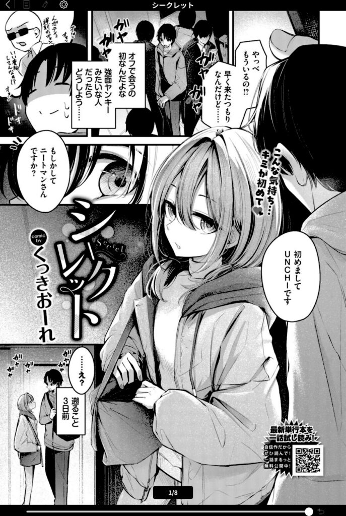 シークレット(くっきおーれ)【オフ会で出会ったのは…まさかの無防備美女だった…!!】不器用ラブエロ作家・くっきおーれが描く、本心に触れる酔いどれえっち!いつもネット上で仲よくしている『UNCHIさん』とオフ会をすることに。ふだんのやりとりからてっきり年上のおっさんが来ると思っていたら…現れたの…
