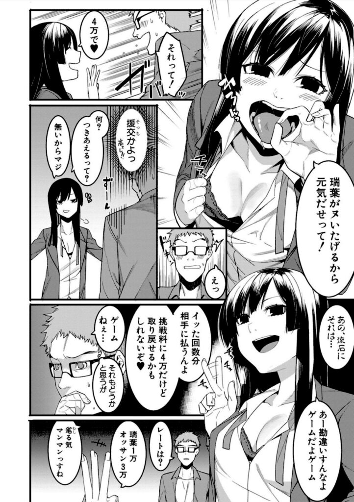 ★無料サンプルから1話まるごと試し読みできます★イッたら負けの援交SEX対決!!30手前童貞男の前に現れた超生イキ美少女・瑞葉。彼女の提案でお金欲しさのイカせ合い勝負が始まるが、見た事ないレベルの巨根にガン突きアクメで即撃沈!!さらにわがままボディの親友も登場、3角姦係に!?抜けるドスケベ援交を描き…
