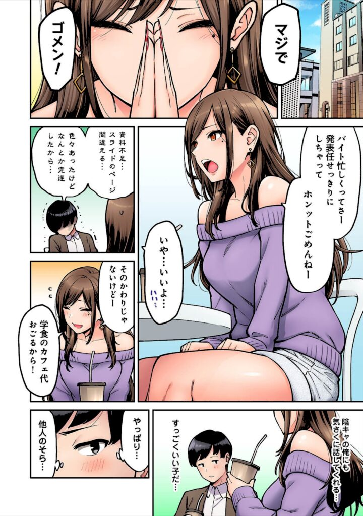 【全239P】電子限定単行本!※巻末5P描き下ろし漫画を収録!ゼミの発表準備中。息抜きにエロ動画を漁っていた大学生の神谷良介は、同じゼミの染谷留香が出ている動画を見つけてしまう!発表後のお疲れ会で彼女に動画のことを聞いたら、内緒にする代わりにHさせてくれることに…